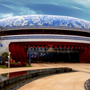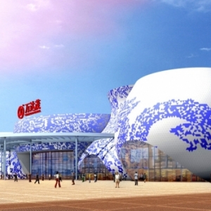 世界最大青花瓷建筑“万达茂”南昌万达茂总建筑面积19万平方米,以“青花瓷”为造型,是由英国著名设计公司Stufish负责造型设计、景德镇陶瓷学院陶瓷美术学院院长何炳钦先生负责青花瓷纹饰设计,彰显了中国悠久的瓷文化,是世界最大的青花瓷建筑。万达茂“青花瓷”外立面率先开创“造型设计+工艺创作+数字临摹+数字优化+建筑艺术+工程设计”五位一体的跨界组合工作模式,成功解决传统艺术创作与计算机数字临摹、非标准化与标准化等多项难题,体现了传统和科技的融合。