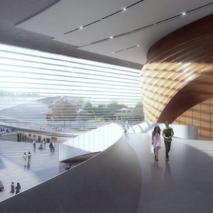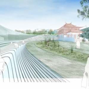 厦门大型新音乐中心设计完成了由厦门市政规划发起的为期六周的设计竞赛,吸取了厦门戏剧性的地形和历史的灵感,沿着海港创造一个新的公共设施。