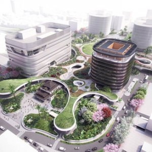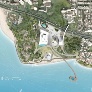 厦门大型新音乐中心在综合体的中心是一个传统风格的园林和寺庙,那里有着茂盛的植物并能一览大海。稍向东,自然森林景观扮演着音乐中心与邻近高速之间的声音缓冲带。而恰到好处的高潮设置是户外海滩的音乐场地和一个投向海港的环形甲板。