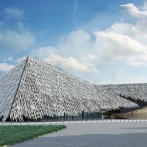 阳澄湖旅游集散中心建筑最大特点是大型的三角形屋面 三角形屋面落落大方互相重叠 就如同沿着湖畔的连亘的山脉 与自然完美地融合在一起