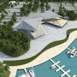 阳澄湖旅游集散中心本工程建筑为地下一层、地上三层 建筑面积为6847.65㎡ 其中地上4947.93㎡,地下1899.72㎡ 这是效果图↓