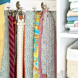 腰带、项链或围巾等饰品可以运用隐藏式的存储方法,而不必一定占用到衣柜的空间。将长形的衣架安装在墙面与家具的缝隙中即可,你是不是已经遗忘了这些角落?那还不快点去开发家里其他边角里的存储空间。