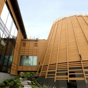 这是一个很独特的项目,是一个四星级酒店与博物馆的结合,是通过第一民族因纽特人的传统和当地文化特色而建造的。这座酒店位于加拿大Akiawenrahk河上,是一个迷人的环境。