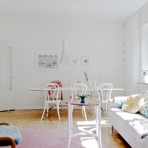 摘要: 这是一个具有小资情调的家居。客厅作为一个休息区,有一个共6人吃饭的餐桌,还有一个阅读的角落,设计严紧大方,粉刷得雪白的墙壁让窄小的空间显得很宽敞,与实木复合地板相结合,是瑞典典型的搭配风格。卧室也是非 ...