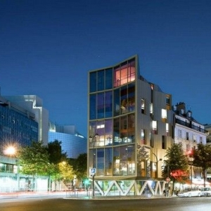 建筑对光线变化高度敏感,材料的金属性与表面变化相结合,加强了颜色的对比和相互转换。短短的几秒钟铝幕墙可以由芥末黄色转变为金色。 建筑虽然只有仅仅15个单元 ,八大复式公寓的凉廊在玻璃百叶窗后形成了窗帘和抽象的垂直屏障。