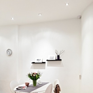 1.5室的结构50平米的面积,这是一套非常特别的单身公寓。公寓的大部分都属于社交功能区域:餐厅和客厅。而留给自己睡觉的仅仅是在那一个人位的小阁楼,通过楼梯爬上去的小阁楼卧室。而在室内的设计依然如北欧瑞典的风格。