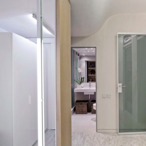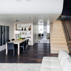 这是一个只有八十平的公寓,由设计师Andrey Gorozhankin设计,公寓位于莫斯科中心区,设计受到日本风格的影响,混合黑暗与明亮,古朴与现代。材料的使用是流行性的,而且是环保绿色的。设计师很生动地将现代的家具,如皮沙发和质朴的木质桌子等相结合,但是它们确实还挺搭的。公寓呈现出极简的风格,但是还是能为住户提供应有的舒适。它没有明显展示任何文化背景,所以你是不会感觉到自己是身在俄罗斯的。