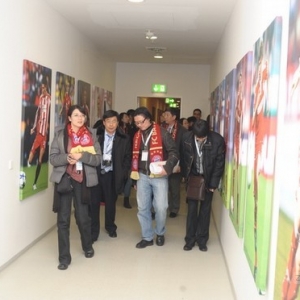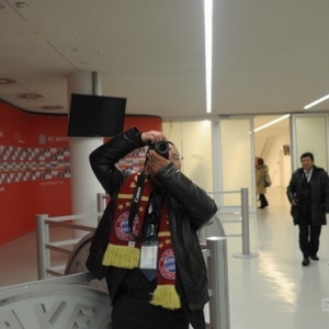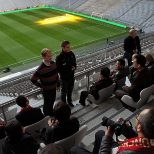 在安联球场的媒体发布区体验一把新闻发言人的感觉