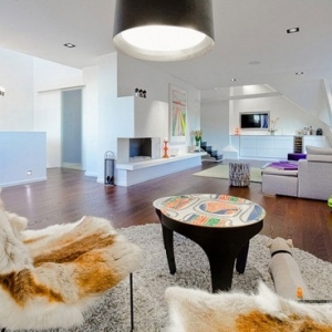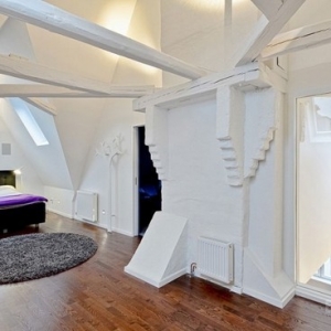 : 这是一个位于瑞典斯德哥尔摩的占地2500平方英尺(232.26平方米)的阁楼公寓,公寓位于一个历史建筑内部,空间经典而又不失现代。