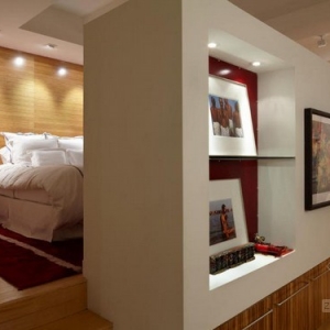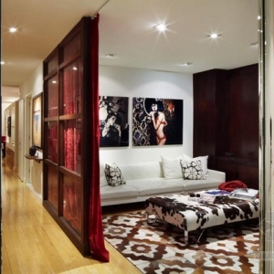 : 这是位于纽约商业中心区的一个公寓,它为兄妹两人设计,都是出自设计师John Beckmann之手,一个是时尚前卫,一个是矜持优雅,兄妹俩的房间都很独特新潮。