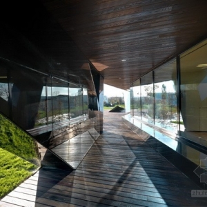 这是由Damilano Studio Architects建筑事务所设计的Vidre Negre办公楼项目。这是一个雕塑般的建筑,它是动感与持续的象征,塑造出强烈的身份认证。建筑位于高速公路外围的节点上,位于一个公园之中,场地周围点缀着当地的植被,入口处还是一个城镇规模的广场。建筑的动感元素表现在不同变化的体量,和一个完全由黑色玻璃断面及光能板覆盖的棱柱体造型上。结构被映射到水中,体量的断层同样表现在室内,从而营造出一系列不同的空间,它们按照四个交错的层次分布,由切口和边窗照明。