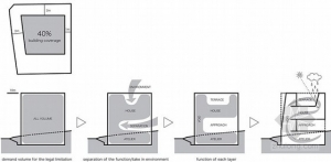 日本荒谷省午建筑研究所设计的“trapezoid”方案,这是一座多层工作室和住宅,业主是一个年轻的三口之家,建筑位于日本兵库县。建筑建在一个倾斜的基地上,由于严格的建筑规范要求,建筑不得不采用不规则的梯形平面,将室内外空间统合到一起。