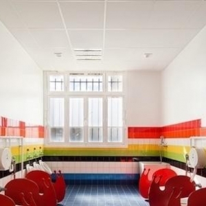 帕若尔幼稚园是建筑工作室Palatre & Leclere多彩而创意的作品,由于一次小型而颇具戏剧效果的翻新,这个位于法国巴黎第18区怕诺尔大街的旧幼稚园获得了第二次生命。门窗上、花园里以及建筑内部都采用了大量的缤纷彩虹形状,包括教室、用餐室、厨房、图书馆、学习区域、教师宿舍、小卖部、休息室以及科技室,处处都是彩虹的缤纷与绚烂,极好地带动儿童的愉悦情绪。