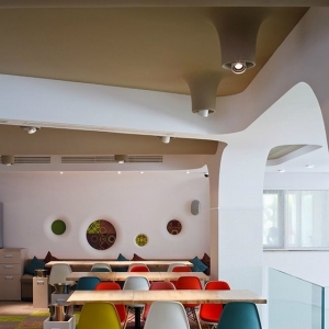 这是位于罗马尼亚首都布加勒斯特(Bucharest)的Phill 游乐餐厅,是一个为家庭聚会设计的地方。这里有孩子们喜欢的游乐设施,多功能房间以及首层小的咖啡厅和二层的餐厅。