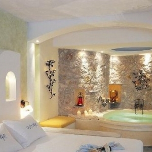 在远离尘嚣,风景优美的希腊,这一全方位服务的酒店可以为前来旅行以及度蜜月的游客提供一个绝佳的栖身之处。在峰峦叠嶂的小山顶,悬崖之边,这一酒店在不断的向你招手,满足你任何需求,从最近基本的私人就餐平台到畅玩各地,一应俱全。这里可以全球新婚燕尔度蜜月的圣地。在阿施塔特豪华套房中,天花板上装饰的施洛华世奇水晶斑驳点点,就像夜空中闪烁的满天繁星;每个套房中都配备有极可意按摩浴缸,让想享受极尽舒适的按摩服务。