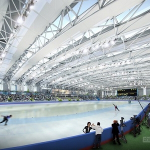 摘要:这是由Samoo Architects & Engineers设计的韩国江原道运动场。该速度滑冰运动场以“冰景”为设计主题,建筑正面的玻璃幕墙将江陵市的自然美景一一折射出来。同时,运动场还将体育赛事中的热情与自然之美融合,使二者相互协调,以此象征方式来体现冬奥会精神。