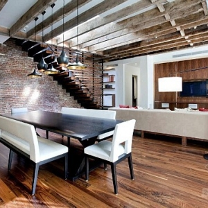 这个阁楼公寓设计的主要挑战是要创建两个明显不同的东亚和西半的公寓之间的流动,添加一个新的宽拱形开放砖墙。窗口被安装在东墙创建新的“大房间“,保证了最大的光照射。型钢天窗、材料的纹理和结构暴露突出了公寓的质量,裸露的砖墙让房屋更具有自然气息。