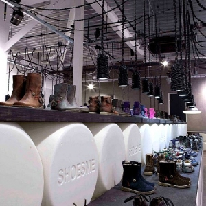 荷兰设计师Teun Fleskens设计了这个Shoesme鞋店内饰,这一概念目的是创造一个非常灵活的内部的基本要素,主体是由骰子组成。