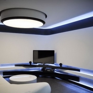 这是由保加利亚设计师 Jovo Bozhinovski 最近完成的一个公寓的室内设计。楼梯是公寓设计的一个重要元素,设计师建造一面高高的黑纤维玻璃墙板,放置在楼梯一侧,不仅可作为扶手用,也能起到增强照明的作用。室内很多家具都是特别为这个公寓设计的,包括餐桌、沙发等等。设计师希望能创造出一种独一无二的家居氛围。