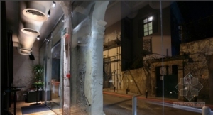 这是位于黎巴嫩的贝鲁特MYU餐厅,这种房间内套房间的拱顶屋是由黑色透明材料建造的,室内的灯光是可以明暗变化的,灯光越暗,室内越黑,越显得深沉。餐厅和酒吧是通过一个巨大的窗户进行交流的。