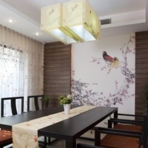 这是一个具有东方古典韵味的设计,沉稳、宁静和质朴的重视感觉与现代家居的舒适、清新揉为一体,既不失庄重,又富有新意。设计师对于房屋的空间划分非常合理,客厅、茶室、餐厅等公共区域以带窗的隔断分割开来,既保有一定私密性,又不会显得过于沉闷和死板。