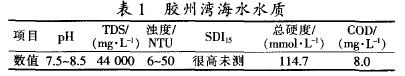 海水由潜水泵输送进入砂滤装置和保安过滤器,然后进入超滤进水箱,再经高压泵输送入超滤系统;超滤产水储存于超滤产水箱并作为纳滤系统的进水。超滤装置使用了两种截留分子质量(MWCO) 分别为80 000 U(膜材质为聚醚砜,编号为UF-I) 和20 000 u(膜材质为聚砜,编号为UF一Ⅱ)的中空纤维超滤膜组件,以死端方式进行过滤。 1.2 测试方法 SDI值采用Millipore公司生产的型号为R1000-8G-NT的SDI仪测定:浊度采用哈纳公司的型号为H293703-1 1的浊度仪测定。 1.3 实验条件的选择 青岛黄岛胶州湾畔的海水水质见表1。