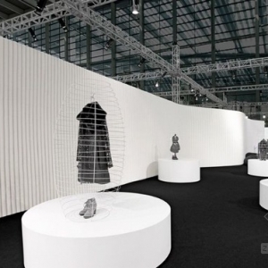 这是来自汉诺森设计机构设计的服装品牌YIFINI易菲展台设计。 对于此次展台设计,汉诺森希望展现品牌气质和风格的变化。色彩上选用自然米白、纯净而柔美。展台造型宏大绵延,材质轻盈温和,通过人们习以为常的传统物料,巧妙重组形成非常独特的建筑“皮肤”,给人过目不忘的视觉特征,借以重新唤起人们对“通常”这一习惯的思考与颠覆,从而达到与企业品牌文化所传递的精神理念的高度契合。 YIFINI易菲是一个本土时装品牌,随着品牌的发展,不仅需要在服装设计上突破,在形象上也希望传达给大众更为国际化和前沿感。