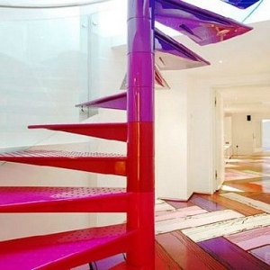 这是位于伦敦的彩虹屋, 由AB罗杰斯设计完成。房子的鲜艳的色彩和图案让人十分炫目。客厅本身就是一个奇迹,在垫子上的一个中心区域气动升降引发创造一个座位坑或高架游乐区。最引人入胜的细节,所有的彩虹色的螺旋楼梯,蜿蜒穿过所有 3 楼层,钢铁和玻璃纤维的定制楼梯进步通过颜色的彩虹。在每个级别,色彩的楼梯影响调色板,创建一个可视化的节奏,通过垂直移动的房子。而色彩也引用了彩虹的7中颜色,看上去十分亮丽,这是年轻人的天堂。