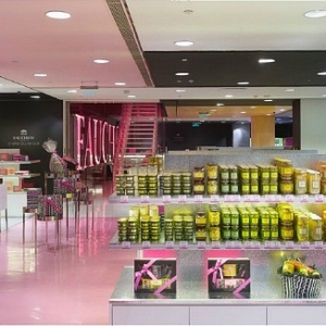 这是FAUCHON在法国巴黎的零售店,整体设计注重空间和色彩,运用了粉红和黑色两种颜色。Fauchon无可指摘的服务和双色调是他们的品牌特征。作为高端的食品零售店,店面设计讲究品质。