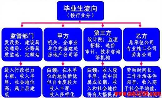 就业面宽,各行各业都需要,机关、企事业单位都有可能,转向也容易。土木工程建设过程就是物化人民币的过程,致富机会