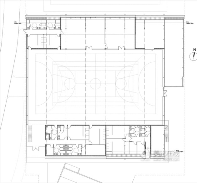 建筑设计:Laurens & Loustau Architects 原来的室内网球场被拆掉,新建的健身中心使用一种两色材料:金色金属涂层覆盖了建筑大部分外表,而同种黑色的金属涂层则是一种突然的新元素。建筑顶上的4条不连续的直线开口能让顶部自然光线照入。 健身中心入口位于西南角,入口的设计是逐步离开地面,形成一种欢迎人们到来的气氛。建筑北面设有大型玻璃开口,让举重室和公园在视线上相通。建筑外表的连续性让建筑达到一种视觉同一,从而突出建筑和自然环境的和谐一致。