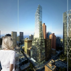 这个综合性项目旨在满足加拿大卡尔加里急速发展的经济和并将它打造成一个主要的大都会。这个项目预计耗资400万美元,在建设期间就将提供250个当地工作岗位,telus sky tower位于市中心,并占据之前艺术中心大楼的位置——将重塑卡尔加里城市天际线。 棋盘格形的玻璃立面包裹了整个建筑,创造了一种动感的反光表皮。公司功能和城市活力相互平衡,telus本身像一个5500平方英尺的公共美术馆,为已经蒸蒸日上的当地艺术社区提供支持。 这个项目在生态可持续方面也享有所考量,这个石油储量丰富的,西部加拿大城市中心希望能在2017年之前获得LEED绿色建筑铂金大奖。telus sky将容纳一个街区的能源共享中心,比同规模建筑少消耗35%的能源。