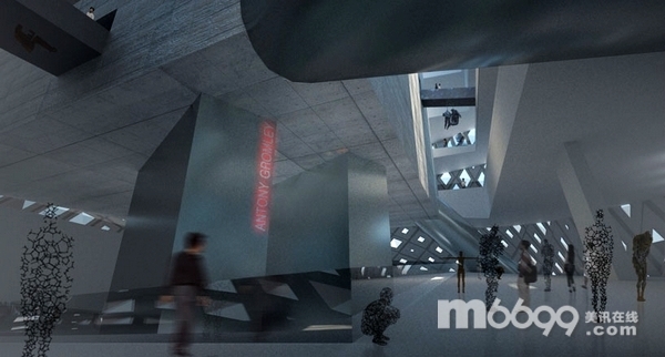 葡萄牙建筑事务所OODA凭借他们设计的方案获得了台湾“新北市立美术馆概念设计国际竞赛”的优选奖。这个项目位于台湾台北市,建成之后的美术馆将成为城市中心区的新地标性建筑,所以需要一个创新的先锋设计概念。由OODA设计的方案包含两个超立方体;一个90度直角的立方体被放置在一个稍大一点的扭曲的方盒子中。参观者要通过悬挂在头顶的拱形外表皮和垂直电梯进入美术馆内部。