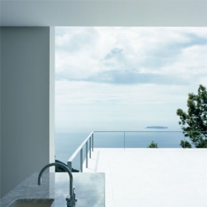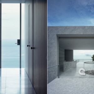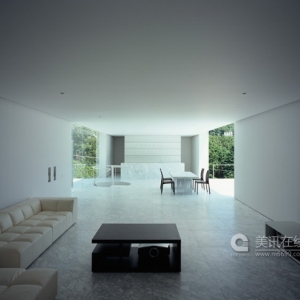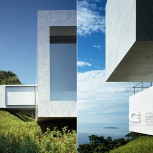 受惠于自然环境的眷顾,日本静冈县依山傍水,而当地的伊豆山更是有名的温泉之乡,度假别墅Plus House 就坐落在这里。 Plus House 的设计者原田夫妇是名副其实的爱山之人,他们于2004 年成立了自己的工作室,名字就叫“富士山建筑事务所”(Mount Fuji ArchitectsStudio)。在设计Plus House 之初,夫妻俩决定忠于自己的喜好,将这间度假别墅打造成别具一格的“洞穴”式建筑。但与其他选址在自然环境中的度假屋有所不同,Plus House 的外形既不打算因循就势、巧借地形,也没有为了融入环境而刻意模仿大自然,而是索性来个“鹤立鸡群”,以一种极为抽象的十字形状凌驾于山坡之上,雕塑般的造型与天然环境形成了强烈反差,用设计师的话说,这是一个跳脱了周围环境而“高度自治”的建筑。 在伊豆山的一片郁郁葱葱中,PlusHouse 的外型十分惹眼,一横一竖交叉叠加的两条混凝土钢筋结构像一个大大的“加号”,Plus House 因此而得名。这两根巨大的长方形混凝土结构总共占地232.77 平方米,外部包裹汉白玉大理石,在太阳下发出熠熠光芒,从高空俯瞰时犹如一枚十字形胸针,别在大地的绿色外衣上。“十字”的底层(一楼)一头直指南边的太平洋,另一头则钻入山上的阔叶林中。一楼是卧室和洗手间的藏身之处,出于对私密性的考量,只安装了小面积的玻璃幕墙,但室内的白色水磨大理石地面起到了很好的反光效果,让南面太平洋海水的蓝光与西面树丛中的绿光相互交织,形成独特的室内风景。 穿过一条狭窄的通道,经一根白色钢制悬梯可以上到一楼的屋顶,这里是观赏山水风光的绝佳地点。屋顶上特地安装了栏杆,既作为露台又担当二楼的“基座”。为了保留露台的完整性,二楼并没有实实地搭在一楼顶部,而是一端架在山脊之上,另一端与一楼顶部相接,“十字”的重合区域被“掏空”。这样一来,二楼成为了一个半开放式的空间,掏空的部分作为厨房,而里侧则是客厅的所在。客厅一侧的大面积开窗让山上的植被充分暴露在眼前,四季的变化也就成为了客厅中一道生动的风景。 Plus House 于去年建成,计划作度假别墅之用。由于占尽地理优势,PlusHouse 不仅坐拥360 度的自然风光,能够呼吸到来自山间的纯净空气,就连卧室和浴室的用水也直接取自伊豆山的温泉。原田夫妇说,Plus House 的与众不同在于它不光选址在山上,这个建筑的设计本身也运用了类似洞穴的元素,屋内极少有任何高科技产品或多余的装饰,让度假成为充分接触大自然的过程,即便是从一楼上到二楼,也有登山的趣味。