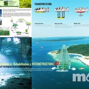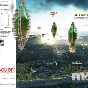 救难者摩天大楼是一座利用藻类氢提供能量的飘浮型摩天大楼,它为灾区的人民提供暂时的避难所。同时,在对疫区进行翻修重建的时候,它也可以作为一个临时的住所。