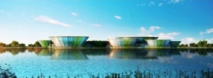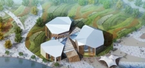 锦州世界古生态博物馆是世界首座以远古生态系统复原为全部内容的博物馆。建筑造型基于能充分展示恐龙生活时代的火山灰沉积环境的岩层形象。馆内的核心展项以堪称世界最大型古动物生态景观和大型冰期时代古生态环境复原景观为代表。博物馆和周边的整体造型轮廓如一块美丽的远古海洋菊石。 “水韵之舞”演艺中心的设计构思是“音乐的容器,旋律的建筑凝固”。建筑造型以一组跳动的音阶形成剧院的主体,环绕着寓意“竹海”的柱阵,共同构建了一个“光的雕塑”,使人感受到一种传统长卷式洄游的空间体验。