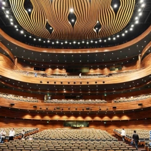 除了设计、装饰一流,无锡大剧院将由国内知名文化企业承担运营,每年预计上演150余场国内外精品艺术演出,打造城市文化产业窗口。无锡官员表示,当地有计划“取经”北京、上海等地的国际艺术节,依托大剧院扶持锡剧、歌舞等本土原创产业,形成国际知名的文化品牌。 从剧场外的临湖步道,到观演大厅的地面;从剧场内的每张座椅,到墙面的吸音板材料;哪怕是一个不起眼的门把手,所有原本要用木材的地方,在这里都毫无例外地用更环保、价低的竹材替代了。锡城体量最大的标志性文化设施——无锡大剧院近日正式开业,其室内装修中使用了可再生环保型的竹材达200立方米。在4月26日的媒体见面会上,设计师和建设者自豪地宣称:无锡大剧院是世界上最大规模使用竹材的公共建筑。
