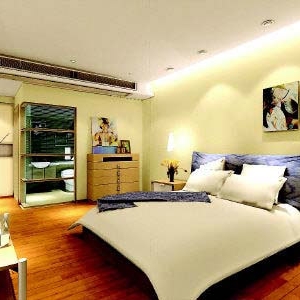 合理设计除“死角” 140平米左右的居室不可能做到每一处的布局都很合理,所以设计中很关键的一个问题就是要去除房间的“死角”。蒋雯丽家的客厅向东面伸进去了20厘米,再加之也是通向主卧的通道,所以很难再摆放家具。设计师便因地制宜地将该处做成了整墙的大柜子,这样不仅使客厅空间更规则,而且全家的杂物也有了一个好去处。 同样的设计方式也被运用到了主卧和主卫。最初的布局,主卧的空间并不大,而且主卫也不在卧室内,同时主卫外又有一块死角利用不上。设计师便大胆地将卧室的门向外移了一些,将无法利用的死角和主卫放到了主卧内,同时将主卫靠卧室的墙换成了玻璃的,使空间更通透。而且同样将死角改造成了大柜子,得到了主人的认可。