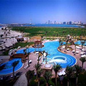 酋长国宫殿酒店 (EmiratesPalace)位于阿布扎比海滩,北面和西面临海,是一座古典式的阿拉伯皇宫式建筑(以前只有在电影中才可以看到)。远远看去,它有点象清真寺,也有点象传说中的辛巴德或阿里巴巴时代的皇宫。每座宫殿都有一个传说的故事,具有很浓的民族色彩。这座与阿联酋总统府仅一街之隔的宫殿式饭店,远看像一个巨大的城堡,拥有1300多米长的黄金海岸线。 |