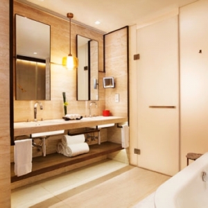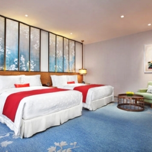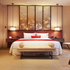 这座饭店是中式风格的“神秘园”,有着矩形的格局。曾经设计过旧金山现代艺术博物馆和韩国首尔的三星艺术博物馆的Botta表示,其设计灵感来自于附近富有中国文化底蕴的建筑。 这座饭店有一座5层楼的矩形建筑和一座椭圆形的内部花园,并用意大利进口的2万块天然陶瓦来包面。