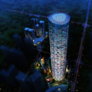 国际航运中心大厦项目位于青岛连云港路和敦化路交叉口东南角,项目建设单位——山东海洋发展有限公司于2011年2月24日通过拍卖取得青岛中央商务区项目地块。国际航运中心大厦主楼高度249.95米,总建筑面积16.06万平方米。项目采用美国一流建筑设计机构概念设计方案,主体建筑方案犹如“定海神针”,挺拔大气不失雍容端庄,通体蔚蓝的色调以及岿然傲立、波光粼粼的设计意象契合了大厦承载的海洋运输功能特征和发展愿景。该项目预计于2015年建成投入使用。