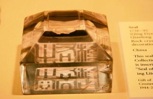 费城艺术博物馆收藏的疑似圆明园文物――水晶制品印章,分别刻有满汉对照的“太上皇帝之宝”,“十全老人之宝”印文,工作组推测,其属于圆明园的可能性较大。