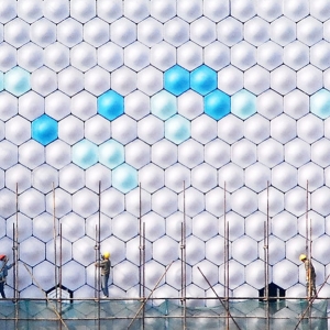 随着工程施工的进展,2010年上海世博会的各个造型独特的展馆陆续亮相世博园区。据悉,整个园区的场馆设施建设将在2009年底基本完成。