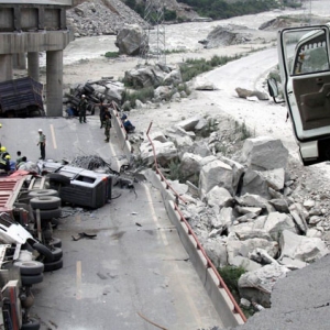 摘要: 7月25日凌晨4:10左右,由于连日大雨冲击,汶川县国道213线都汶路44KM+200处,因山体滑坡造成彻底关大桥桥墩被垮塌的巨石砸断。截至25日16时30分遇难者增至6名。 2009年5月16日拍摄的彻底关大桥 从汶 ...