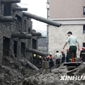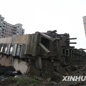 6月27日,倒塌的商品房地基全部外露。当日6时左右,上海闵行区莲花南路罗阳路口一幢13层在建商品楼发生倒塌事故,目前已造成一名工人死亡,事故原因尚在调查中。