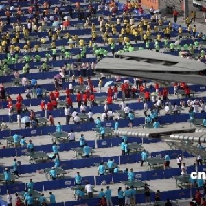 6月20日,北京市第七届全民健身节开幕式暨“和谐杯”千台万人乒乓球展示活动在奥林匹克公园景观大道举行,本次健身节将从即日起在全北京市范围内展开22项主题鲜明、形式多样的体育活动,一直持续到8月8日。此次“和谐杯”乒乓球赛从2009年3月1日起启动,覆盖了北京市129个街道2523个社区和119个乡镇3957个行政村,参赛人数达到80万。