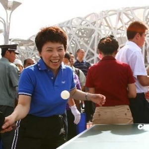 北京万人“鸟巢”前打乒乓球
