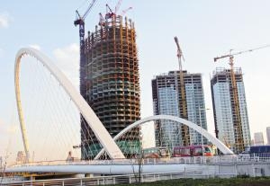 作为天津市20项重大服务业项目的重要组成部分、天津金融城的标志性建筑,“津门―津塔”目前正在加紧施工。截至目前,项目建设进度已经过半,“津塔”已建至40层,项目主体年内可基本建成,并将于2009年年底前正式投入使用。届时,海河畔将崛起本市336.9米高的新地标。 据了解,“津塔”项目总建筑面积约34万平方米,其中地上75层,地下4层,由世界级的国际化商务办公楼和酒店式公寓共同构成;“津门”项目采用拉德芳斯门型建筑设计理念,以71米高的“门”型超五星酒店而得名,目前项目主体施工已经完成总量的60%。