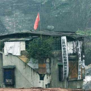 2009年2月4日,重庆市渝中区化龙桥,工地周围平地处凸现“孤岛”钉子户