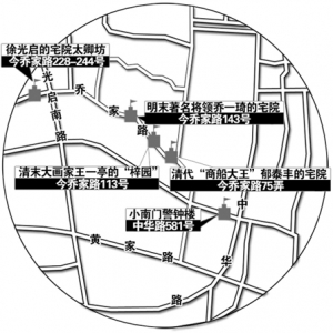 乔家路老街伤痕累累 第18站 ●挑刺时间:11月7月 ●挑刺地点:乔家路老街上的故居、名胜 ●挑刺内容:老街上马路菜场和建筑现状 明代科学家徐光启、海上奇人王一亭、商船大王郁泰峰……位于黄浦区小南门总长539米的乔家路记载着许许多多耳熟能详的名字。然而这条集明、清、民国、现代建筑为一体,拥有数幢名人故居的上海老城厢传奇老街,如今因为繁杂的马路菜场和违章建筑而面目全非。 日前,早报啄木鸟行动组来到乔家路上,一一探访了这些遭受着种种“伤痛”困扰的故居、名胜。 挑刺老建筑保护,是希望上海在加快旧城改造步伐时,让淹没在旧墙老屋间的古迹真正焕发青春。保护老城厢,留住“上海的根”。